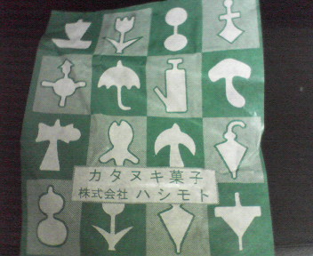 おばちゃんに100円渡して、写真の紙に包まれた型から好きなやつを一個取ります。